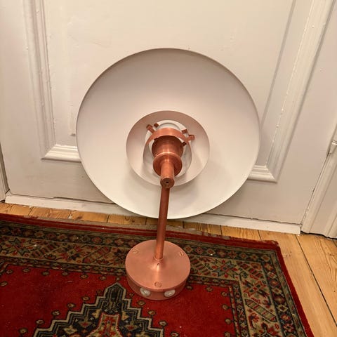 PH kobber væglamper. 2 stk sælges samlet til kr 9000.- Den ene i perfekt stand. Selvfølgelig med patina og brugsspor.Den anden med småreparationer der ikke ses når lampen er hængt op. desuden mangler den 2 skruer til vægophænget ( kan købes hos Louise Poulsen )