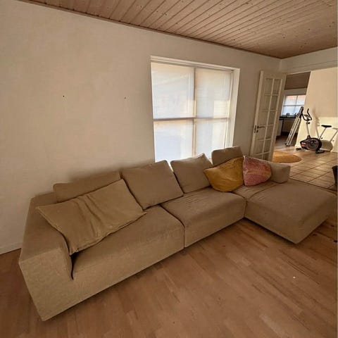 Mål: 200cm bred cirka og chaiselongen er 160cm dyb