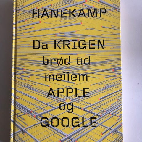 Pelle Hvenegaard Hanekamp bog med titlen "Da krigen brød ud mellem Apple og Google". Bogen er indbundet med gul forside og grafisk mønster. Udgivet på forlaget People’s Press. Emnemæssigt omhandler bogen konflikten og konkurrencen mellem teknologivirksomhederne Apple og Google.