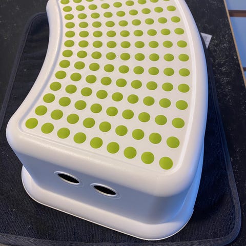 IKEA skammel i træ. Skamlen har to trin og et greb i øverste trin til nem flytning. Egnet som ekstra siddeplads eller som hjælp til at nå højere hylder i hjemmet, fx i køkken, badeværelse eller børneværelse.