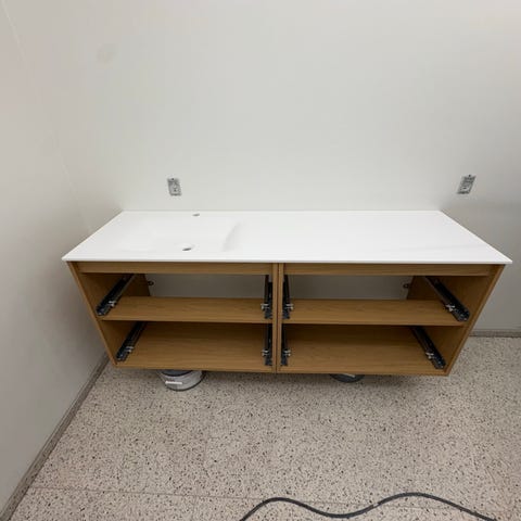 Hej, vi sælger vores bademøbel grundet at målene desværre ikke passede ind til vores badeværelse alligevel og blev for stort.