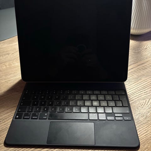 Jeg har aldrig har problemer med det her setup, der har altid været skærmbeskyttelse på fra Paperlite og næsten aldrig brugt den uden magic keyboard, så selve ipad er i flot stand.