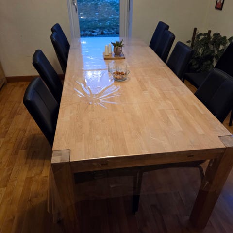 Lille 6pers spisebord i massiv egetræ ( stolene medfølger ikke)