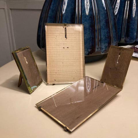 Tre fine rammer til fotos eller tegninger, med hvidt passepartout. Kan hænge som portræt eller som landscape. Købt hos en rammemager.