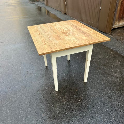Ældre svensk klap ud spisebord med de originale jernsøm. Dybde nå slået ud 161 cm.