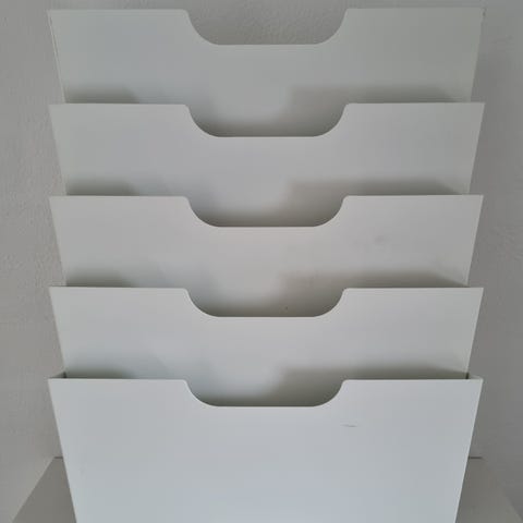 Koziol “Milano” magasinholder i sort. Af langstrakt, oval form med små ben. Egnet til opbevaring af magasiner, aviser eller bøger. Neutral, moderne stil der passer ind i forskellige rum som stue, kontor eller entré.