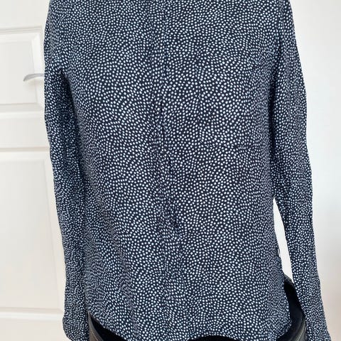 Smuk og elegant skjorte af Mulberry Silke, med elegante detaljer. Fornemmes tydeligt at være af højeste kvalitet! Desværre aldrig brugt. Er str. 36, men stor i størrelsen og kan derfor nemt bæres af str. 38 og 40. De smukke bånd forrest kan enten bindes i løs sløjfe eller som "slips".