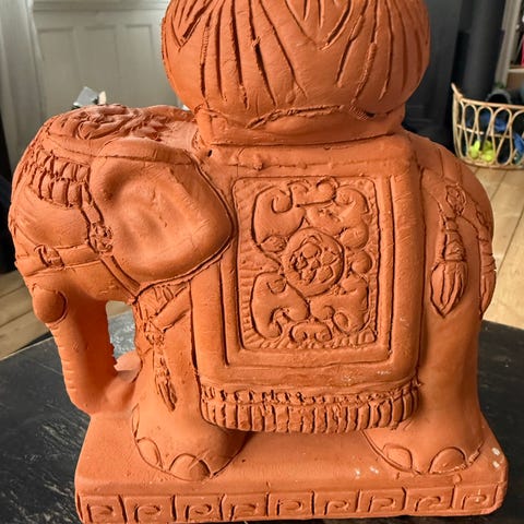 Elefantlysestage i sort patineret metal med spyd til lys.
