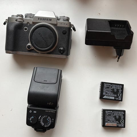 Sælger mit Fujifilm X-T3 kamerahus, der er i super stand, Der er ingen fejl i kameraet, ren sensor og minimalt med ridser. X-T3 kan styres fra Fujifilm XApp der kan downloades gratis. Det er virkelig et godt værktøj.