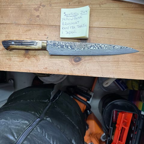 På det sidste billede stå beskrivelse af kniven. Kniven er i flot stand og uden brugsspor. Mål af kniven ses på billederne.