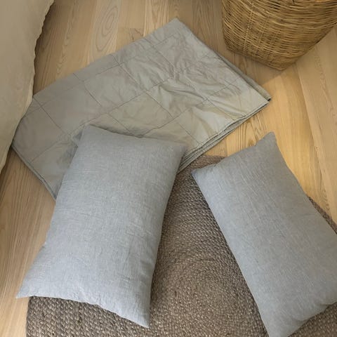 Tine k snegekappe i 100% øko hør. Brugt et lille års tid, men da vi får en ny seng, passer den ikke længere. Farve grå/blå. Fremstår som ny. Nypris 3200. Sælges ikke mere i den farve men kun i sand/hvid. Kan afhentes på Østerbro eller sendes.