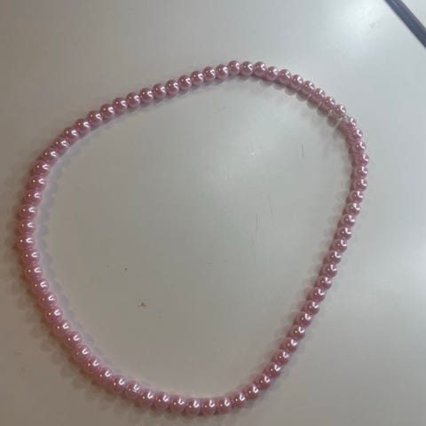 House of Amber halskæde i rav. Halskæden består af ovale, facetslebne ravperler i en gylden-orange farve. Perlerne er trukket på snor med skruelås i rav. Ifølge vedlagte vurderingsseddel vejer halskæden ca. 15,9 g. Velegnet som smykke til daglig brug eller særlige lejligheder