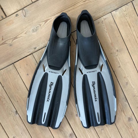 Fødderne er brugt, men i rigtig fin stand, uden synligt slid, og er perfekte til børn eller unge, der vil få mere fart og kontrol i vandet.