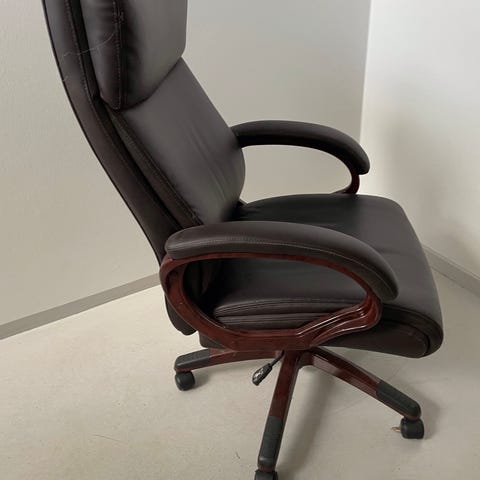 Flot designet og behagelig kontorstol i imiteret læder (vegansk) og base af rustfrit stål.