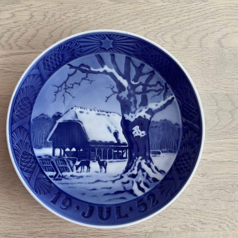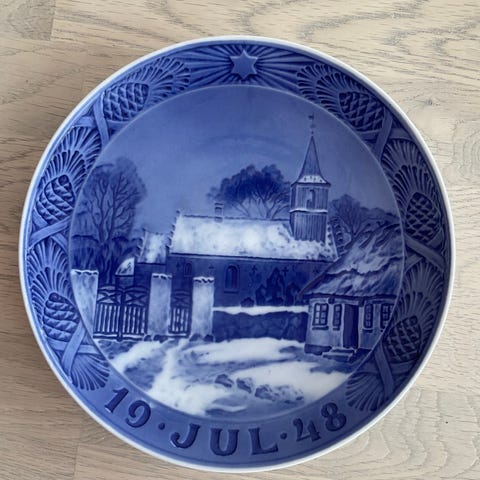 Bing & Grøndahl juleplatte 1961 porcelæn blå