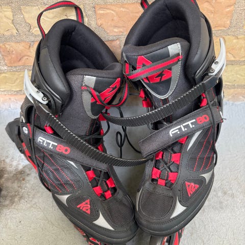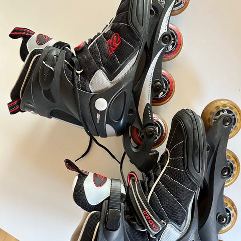 K2 Freedom rulleskøjter i størrelse 40. Modellen er en inlinerskøjte med fire hjul på hver skøjte. Farven er primært sort med detaljer i turkis og hvid aluminiumsramme. Skøjterne har blødt støvle-design med spænde, snørebånd og velcrorem for justerbar pasform. Velegnet til fritidsbrug og træning på asfalt og andre jævne underlag. Brugt 1 sæson. Virkelig fin stand. Nypris 999kr.