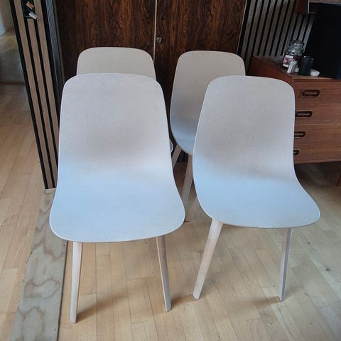 4 spisebordsstole sælges samlet. Brugt, men i ganske fin stand :)