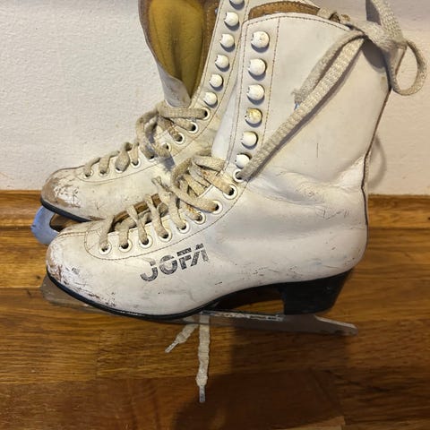 Supreme Joelle skøjter i størrelse EU 35. Klassiske hvide skøjter med snørelukning og støttende skaft. Egnet til almindelig skøjteløb på is, fx i skøjtehal eller udendørs isbaner. Indvendigt blødt fór for øget komfort. Blad med beskyttelsesskinner påsat på billederne.