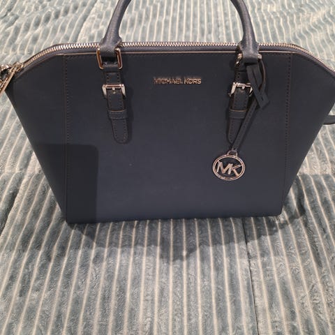 Michael Kors håndtaske i sort læder til kvinde. Tasken har to bærehanke og aftagelig/justerbar skulderrem. Lukning med lynlås øverst. Indvendigt er der opdelt rum med mindre lommer til organisering af indhold. Udvendigt har tasken et enkelt, glat design med metalbeslag og rundt MK-logo-vedhæng i metal på forsiden. Egnet som hverdagstaske eller arbejdstaske med plads til almindelige daglige ejendele.