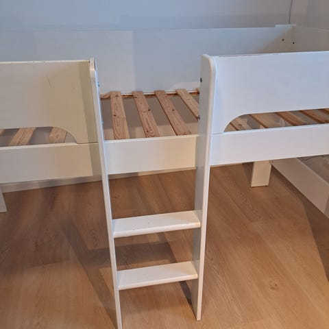 Hvid halvhøj FLEXA seng med lige stige og sengehest.