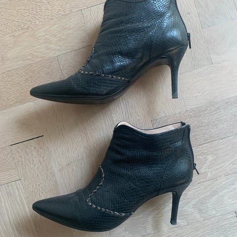 Skoene ligger i en sort Julie Fagerholt pose.