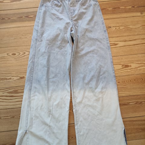 H&M jeans til pige i str. 152. Bukserne er i blå denim af bomuld med let slid-effekt. Modellen har bootcut-ben og justerbar talje med lav taljehøjde. Velegnet som hverdagsbukser til større børn i alderen ca. 11-12 år, afhængigt af barnets højde.