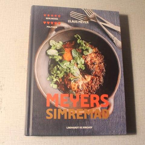 Claus Meyer Meyers Simremad kogebog. Kogebog med opskrifter på simreretter og langsomt tilberedt mad. Indeholder billeder og trin-for-trin vejledninger til retter baseret på længere tilberedningstid, fx gryderetter og ovnretter. Velegnet som inspirationsbog til hverdagsmad og gæstemad med fokus på simremad.