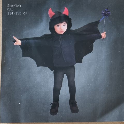 Enkelt sort kappe til børn til fastelavn eller halloween. Str. one size. I original emballage.