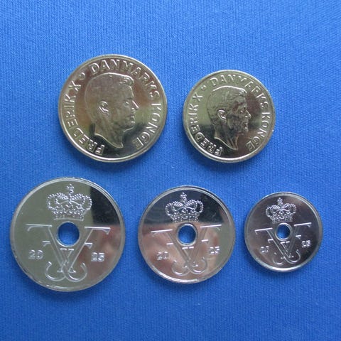Kong frederik 2025 2 stk 5 KR 2 stk 2 KR 2 stk 1 KR