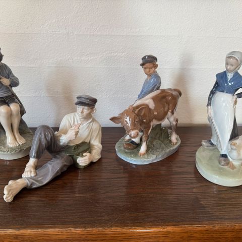 Royal Copenhagen porcelænsfigurer med småskader landliv motiv flerfarvet