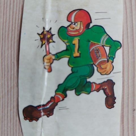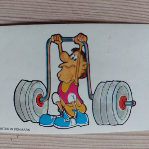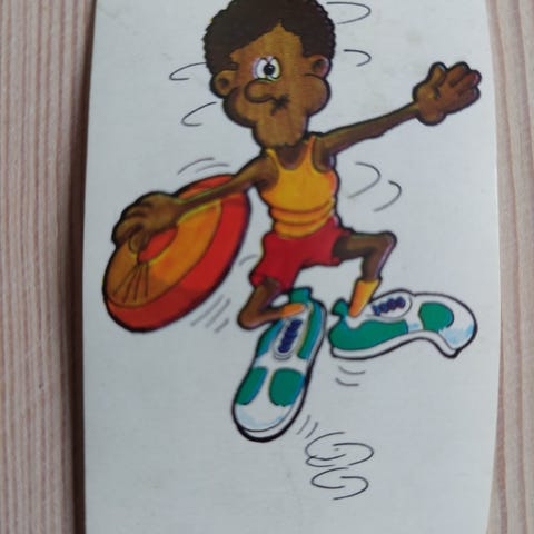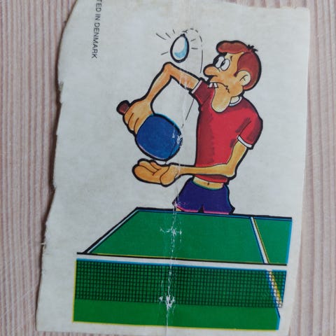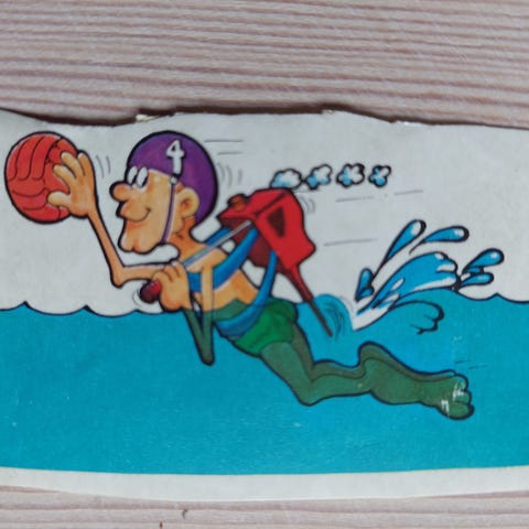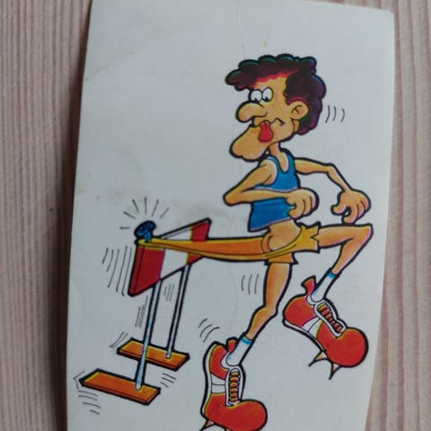 Samlemærker fra 70'erne, men humoristiske sportsmotiver.