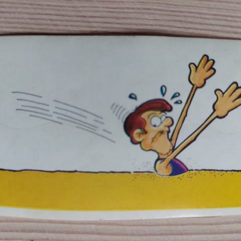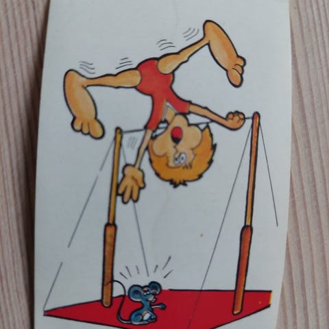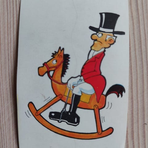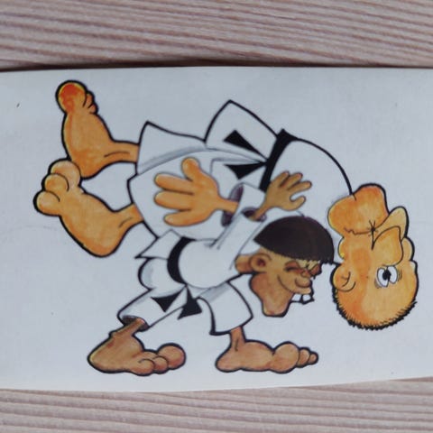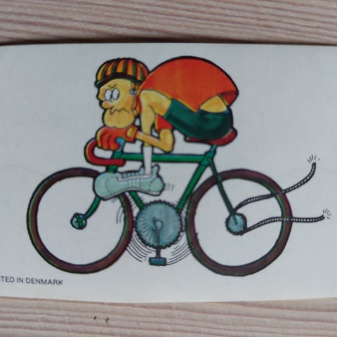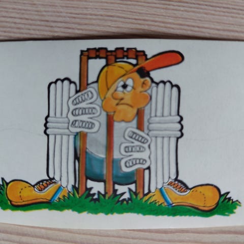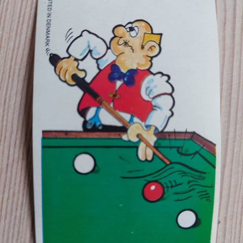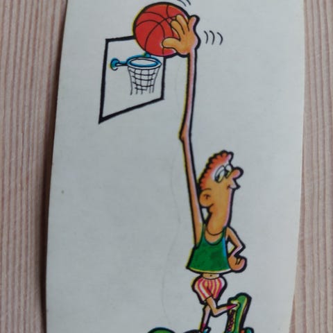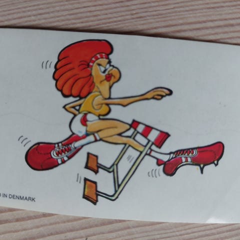 Samlemærker fra 70'erne, men humoristiske sportsmotiver.
