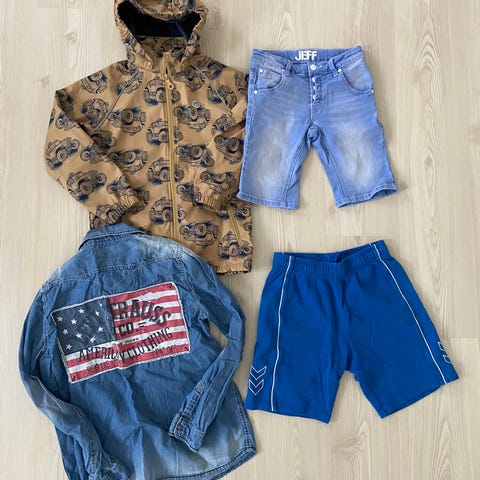 Hummel pakke str. 122: 1 par bukser, 1 par shorts, 5 t-shirts og 3 trøjer. Noget er GMB andet er NSN, 400 kr
