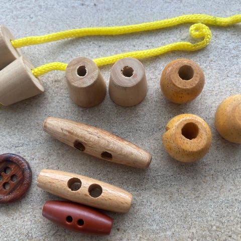 Træknapper i blandede motiver i naturfarvet træ. Motiverne omfatter blandt andet stjerner, blomster og forskellige dyre- og figurhoveder. Knapperne har 2 eller 4 huller afhængigt af motiv og egner sig til syning, strik, hækling og andre kreative hobbyprojekter. Velegnet til dekoration af tøj, accessories, legetøj eller scrapbooking.