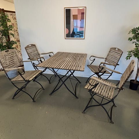Eksklusivt SCANCOM havemøbelsæt i træ, bord + 4 foldestole