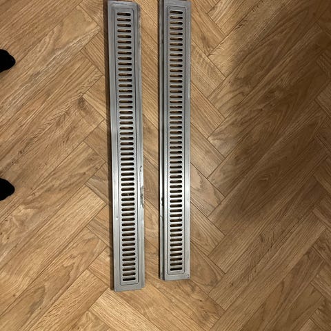 Unidrain gulvafløb i rustfrit stål. Kvadratisk rist med perforeret mønster monteret i rundt flangestykke og lodret afløbsstuds. Egnet til installation i badeværelser eller andre vådrum, hvor der ønskes et indbygget gulvafløb i metal. Monteringsskruer er integreret i flangen, og risten kan vippes for adgang til afløbet.