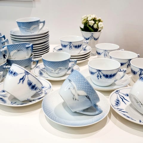 5 sæt kop, underkop og sidetallerken af det kgl. Stel EMPIRE