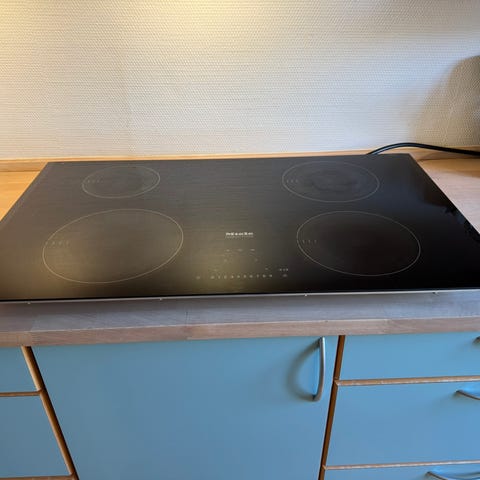 Jeg sælger kogepladen da vi skal have et nyt. Det er brugt i ca 2 år. Der er et skår i øverste højre hjørne, som alene er æstetisk. Det er Miele Komfur KM 7464 FL.