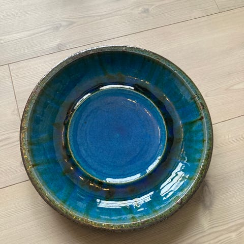 Den smukkeste Hans Rudolph Pedersen Keramik Skål i Farverne Grøn Brun Blå Glasur.