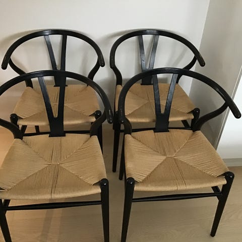 Hans J. Wegner spisebordsstole med armlæn træ stof