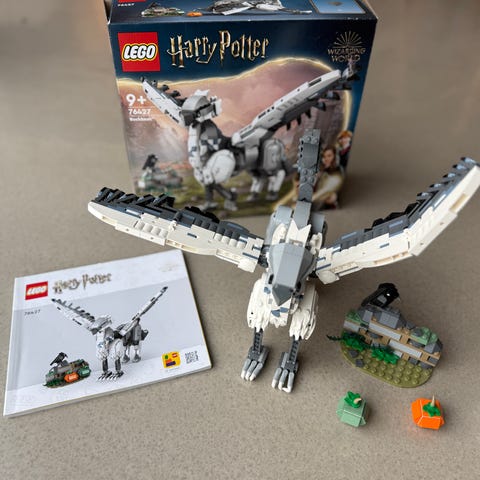 LEGO Harry Potter byggesæt 76425. Sættet indeholder en byggelig uglefigur på stander med skilt, en kiste samt mindre tilbehørsdele inspireret af Harry Potter universet. Der medfølger trykte klodser og elementer med Harry Potter motiver samt en byggevejledning. Egnet som samlesæt og udstillingsmodel for fans af LEGO og Harry Potter.