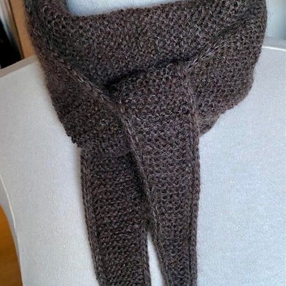 Hjemmestrikket scarf / tørklæde i silkemerino (55 % ren uld, 45 % silke).