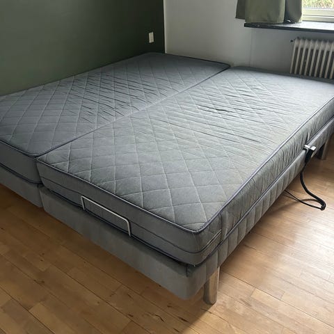 Ilva elevationsbund i metal. Sengebunden består af to separate sektioner med justerbare led, der kan hæves og sænkes ved hoved- og fodende. Konstruktionen er udført i metal med perforerede flader og tværgående metalribber, som giver stabil støtte til madras. Velegnet som base til dobbeltseng med elevationsfunktion. Elektriske komponenter og kabler er integreret i rammen under bunden.