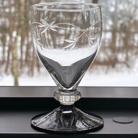 Lyngby Glas hvidvinglas i klart glas med slibet mønster. Model Eaton. Glasset har fod med markering af producenten på undersiden. Velegnet til servering af vin eller andre kolde drikke ved borddækning og til hverdag eller mere formelle lejligheder.