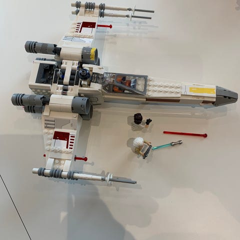 LEGO Star Wars X-wing Fighter byggesæt. Sættet indeholder en X-wing stjernejager samt flere minifigurer fra Star Wars-universet. Modellen kan bruges til leg og udstilling og er en del af LEGO Star Wars serien. Byggesættet består af klodser til at samle rumskibet med bevægelige dele og detaljeret cockpit. Velegnet til fans af Star Wars og LEGO byggeklodser.