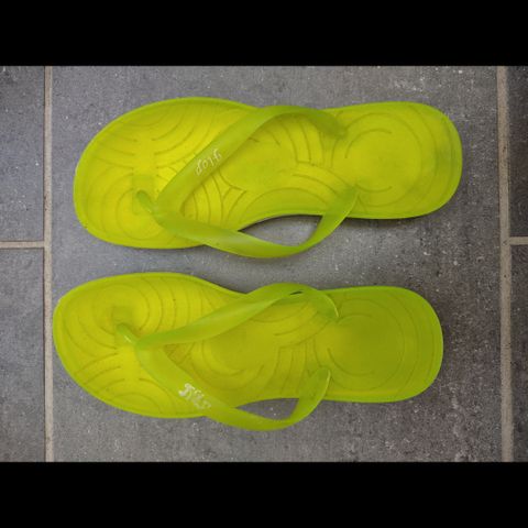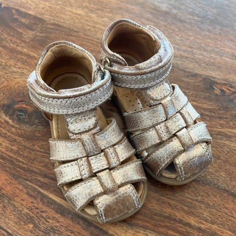 Lidt slidt sandal i farve grå/grøn.