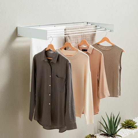 De to foldbare sidevinger rummer t-shirts, håndklæder og småt tøj, mens de 8 centrale stænger tager resten. Når vasketøjet er færdigt, klappes stativet nemt sammen og opbevares diskret bag en dør eller i et skab. Perfekt til lejligheder, bryggers og alle, der ønsker en effektiv og smart løsning til tøjpleje i hjemmet.