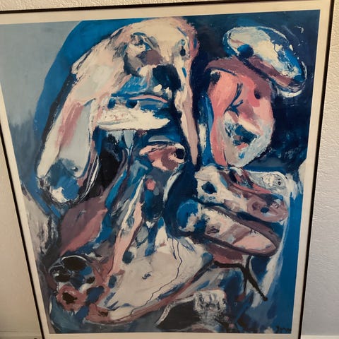 Maleri abstrakt motiv landskab og figur