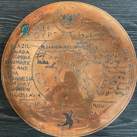 Messing plade der hylder Dansk Røde Kors for deres hjælp til Belgiske krigsfanger under 1. Verdenskrig. De blev holdt fanget af tyskerne i byen Prenzlau.