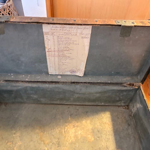 Bemærk detaljerne med den tyske ørn, pigtråden, kongekronen og initialerne A B.
